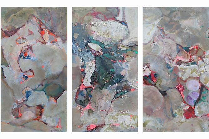 Some works evoke the intimate contact between the colored landscapes and the eye; while others offer a significant sensibility uniting abstraction and representation that are loaded with a symbolic weight.