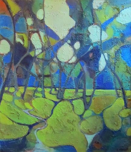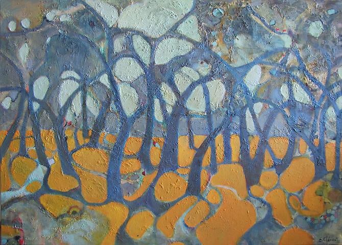 Elena creates figurative and abstract paintings focused on a process of internal exploration which she shares with the world.  We, as the audience, must be open to appreciating the romantic palette with which she explores the use of color and the company of a particular silence that is present in almost all of her paintings.