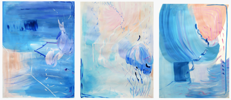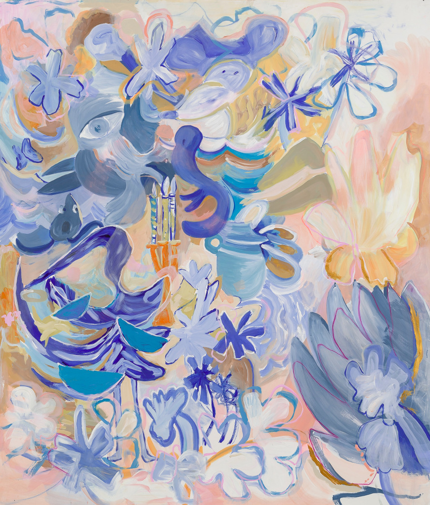 Valeria Vilar’s paintings are memories of tales, dreams, recondite places of imagination and fantasy. The figurative becomes more visible at certain moments and disappears to leave a space for the reconstruction of each spectator freeing his or her imagination. The characters are dissolved, and give rise to strokes of abstraction where you feel the need to recompose the story. Figurative in some parts, images are presented as a puzzle that distracts us with colors and gestures in the composition.