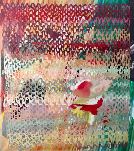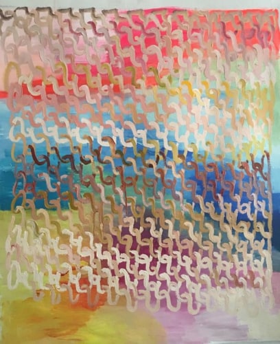 Alejandra Seeber's complex and multilayered work focuses on the reinterpretation of everyday subjects through spontaneous painterly gestures. Oftentimes, these gestures overlap repetitively causing figurative elements to unexpectedly emerge from abstract-expressionist images. She employs layered complications that distort the senses and invoke a contemplative experience. While Seeber’s work is purely abstract, the organic free flowing patterns and symbols are redolent of landscapes. The initial sense of light heartedness, conveyed by her pictures gives way to a more conceptual framework that is indicative of the human condition.