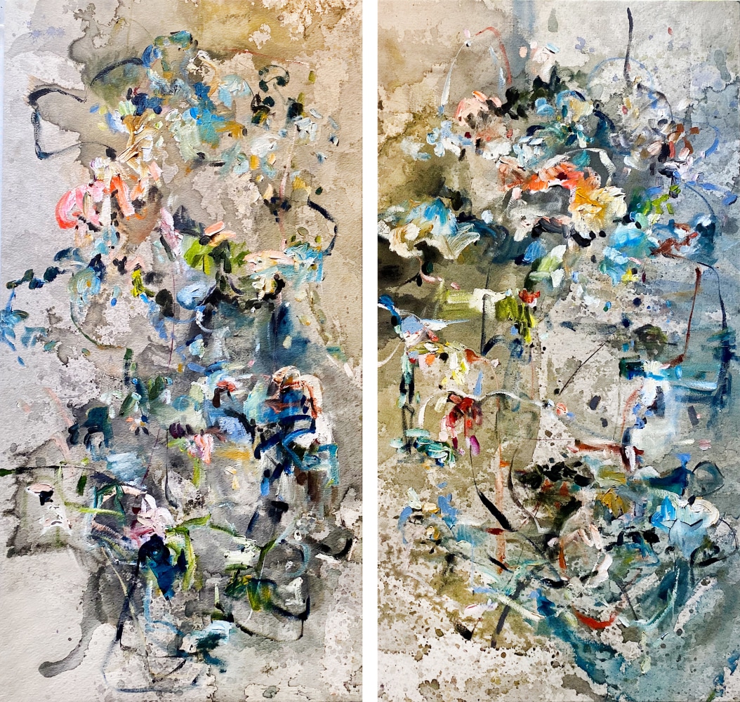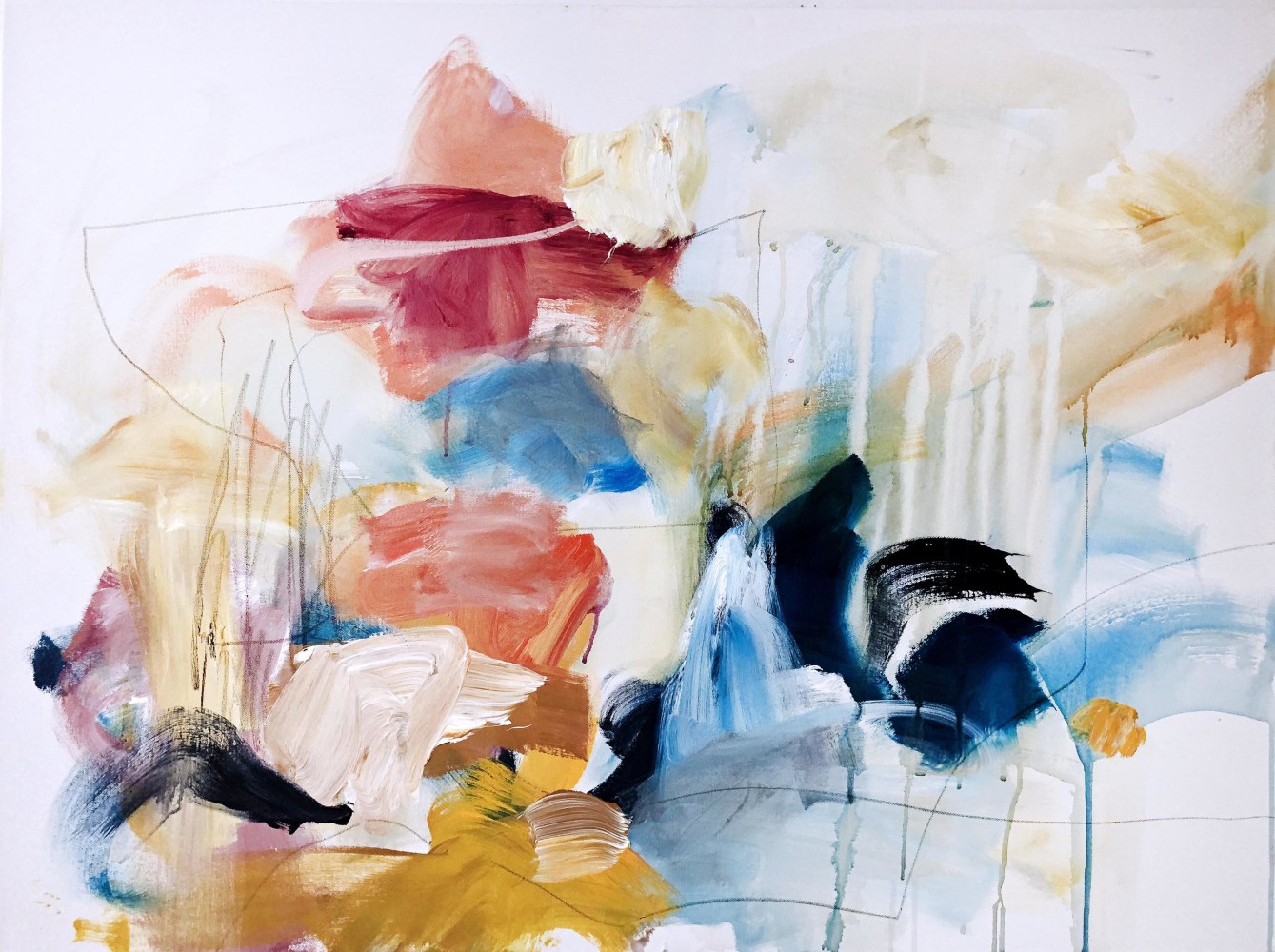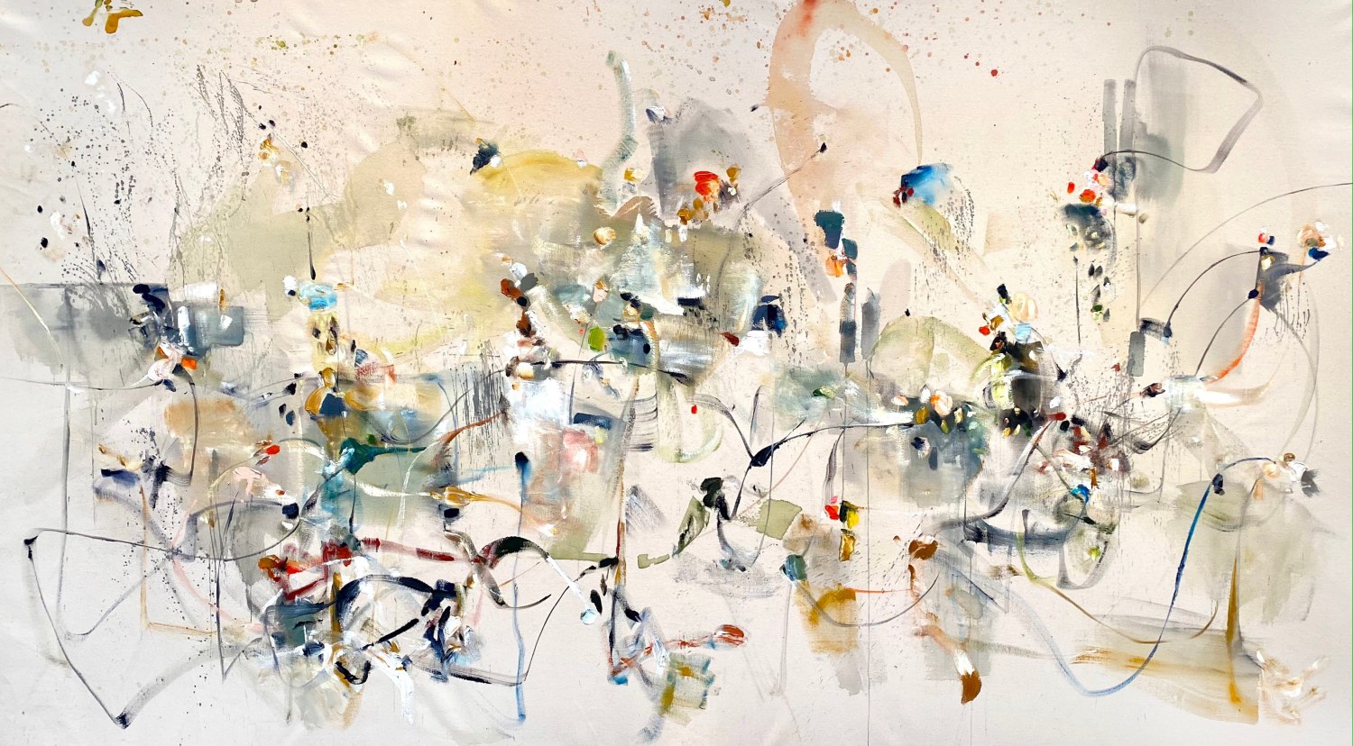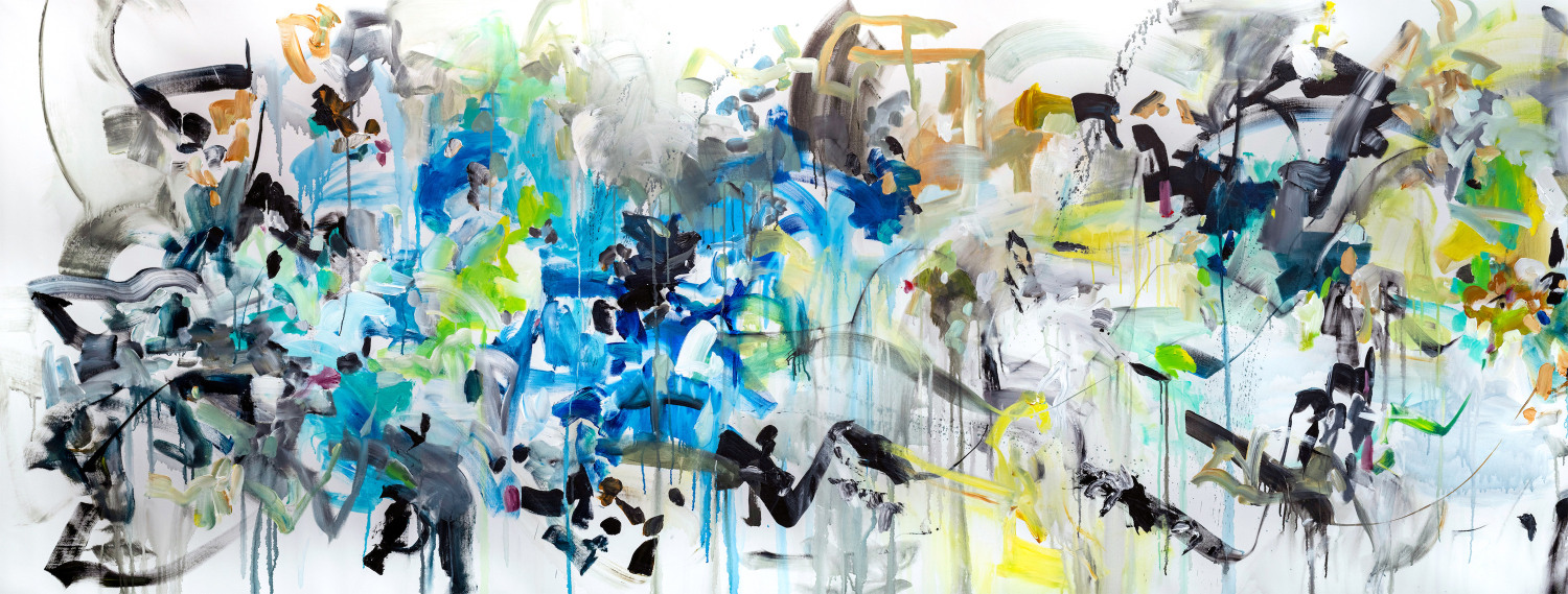 In her abstract paintings Vicky Barranguet alludes to music, improvisational dance and oscillation. Color-infused and jazz inspired, Vicky’s paintings evoke music in a pictorial way. “Aguas de Março”, “Fly me to the Moon” are just some titles of her artworks… her brushstrokes become musical notes as the canvas becomes the score of each “song” she paints.