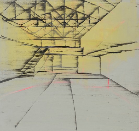 Luciana Levinton sketches facades, delineates floor plans, blurs interiors, and de-contextualizes architectural elements to recreate precise figurations of architecture full of energy and life. The urban landscape comes alive through strident combinations of short and long brushstrokes that create phantom-like images of what can be identified as buildings, though not yet fully defined. Infused with dynamic perspective and vibrant color, Levinton's spaces entice viewers into a place of heightened anticipation and imagination.