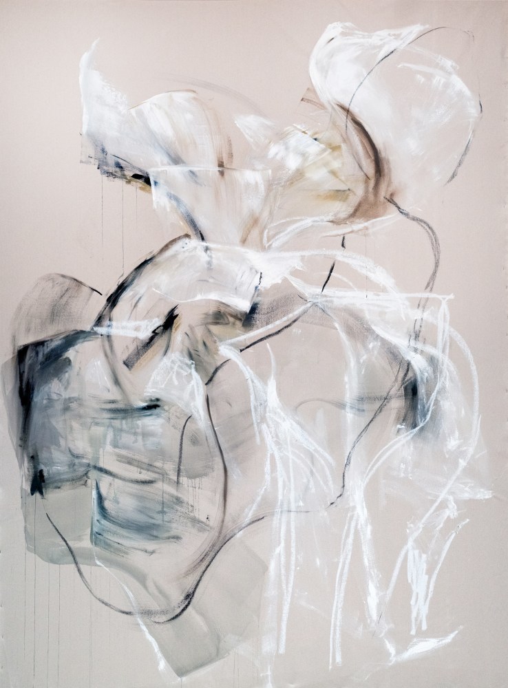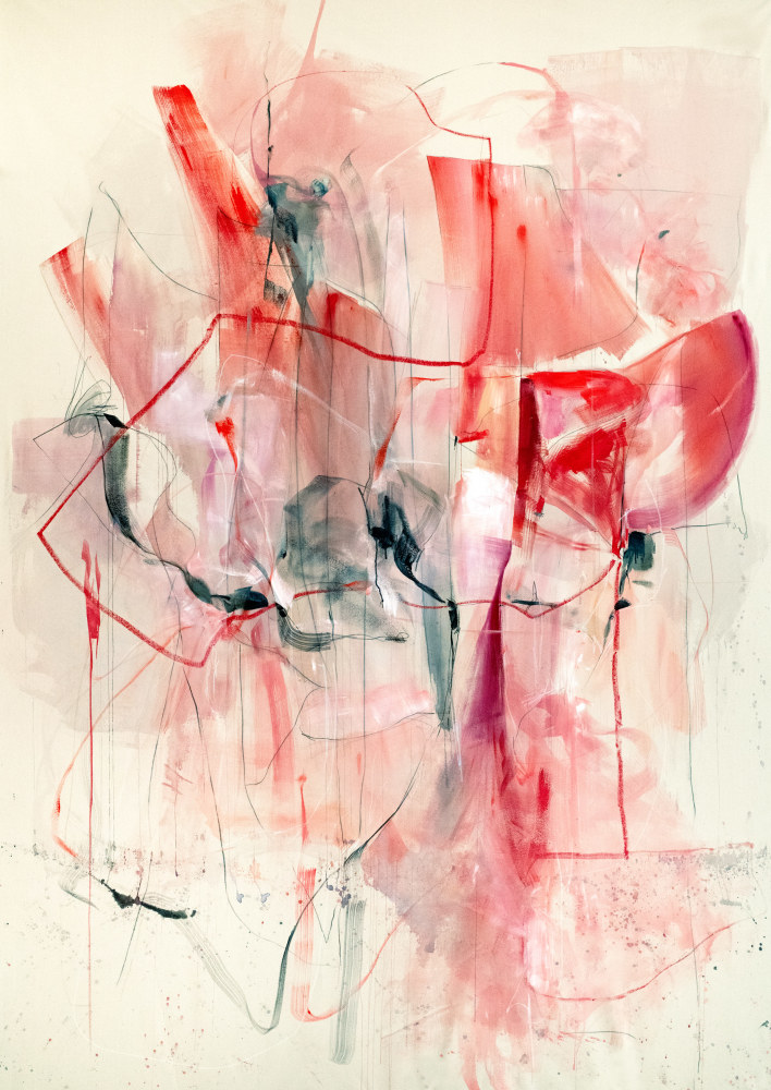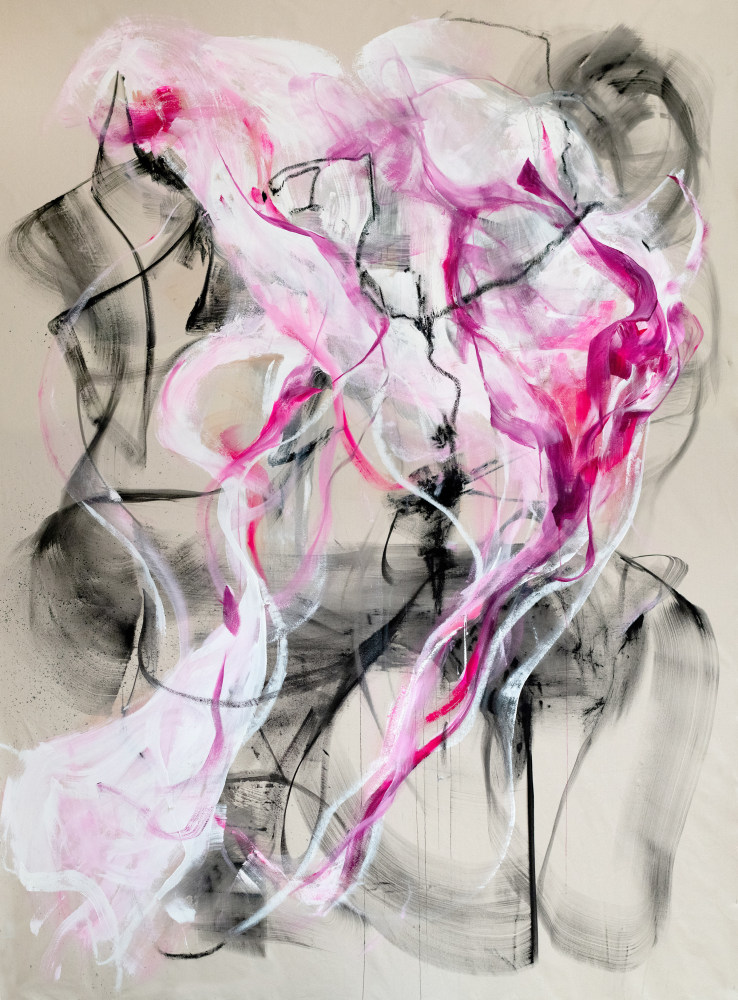 Inspired by nature’s fluid curves and movement, this series by Uruguayan artist, Vicky Barranguet, features a bold yet subtle palette that includes soft pinks, nudes, reds, black, white, and blues, evoking the contrast of light and shadow across the seasons. The raw canvas captures the graceful lines of the human figure, reflecting the way fabric flows in the wind during an emotional dance. This series, part of a collaboration with designer Robert Rodriguez, merges the romance and beauty of the desert, ocean, and the human form into a seamless expression of natural elegance.