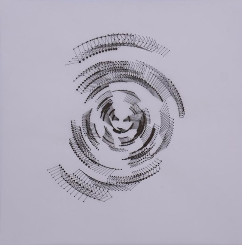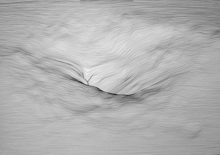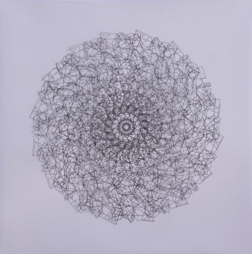 Julián Terán has a deep interest in the surfaces of life from the geological-scenic, to the animal-human. In the words of the artist, “impulses originating in the invisible depths leave their footprint surface inside out.” Through such topographic studies, the artist’s intent is to reveal what lies beneath the visible surface. Terán analyzes various topographies of land and deconstructs the maps of volcanoes, stars, galaxies and forming islands. Ultimately the artist internalizes this data as he translates and extracts the essence of natural landscapes through the layers of carefully hand drawn lines and patterns.