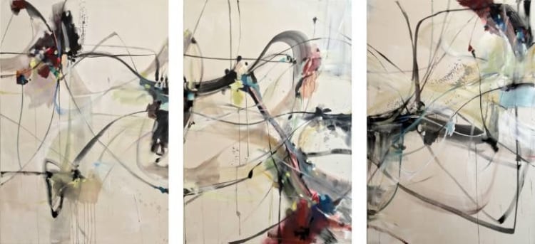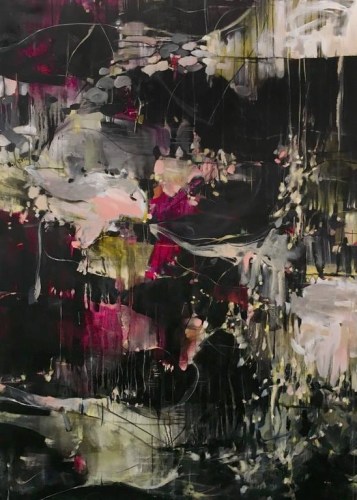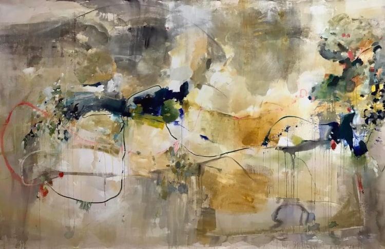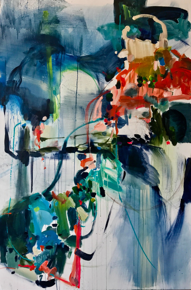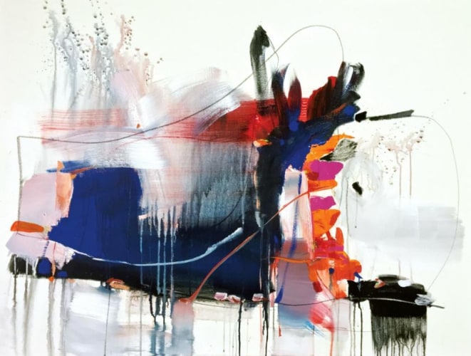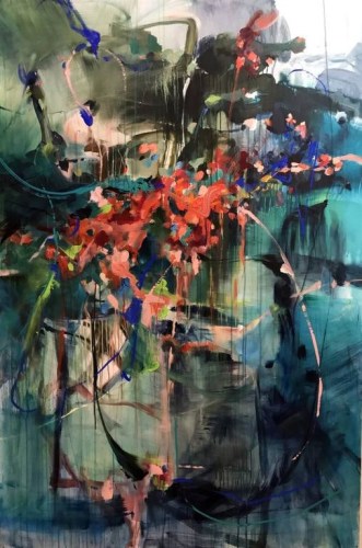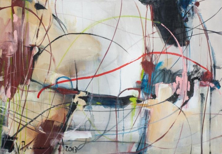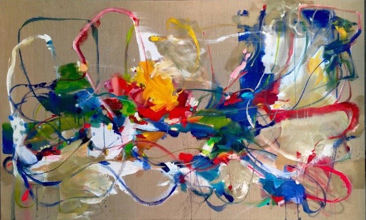 Vicky Barranguet’s studies with painters Larry Poons and William Scharf propelled her to find a voice of her own and a colorful expression about life and music. Her spontaneous and daring works led to the creation of an open minded art approach, where she combines painting with music. In her abstract paintings, undulating and cascading colors capture the effusion of spirit and tone. Whether enjoying music in the confines of the studio or live painting in front of an audience, each composition guides her, fueling the creative energy that gives Barranguet’s paintings a unique texture, scale, and vibrancy. Each brushstroke fluidly swerves across the canvas, capturing the visual equivalent of rhythm and sound.