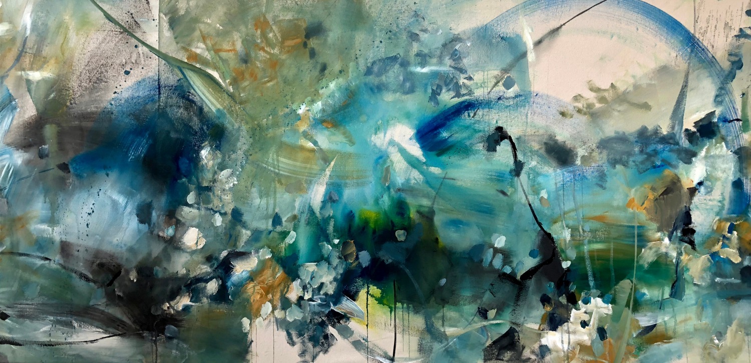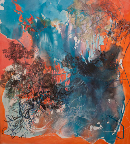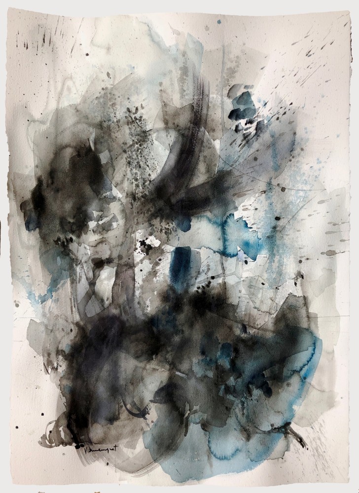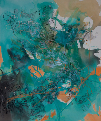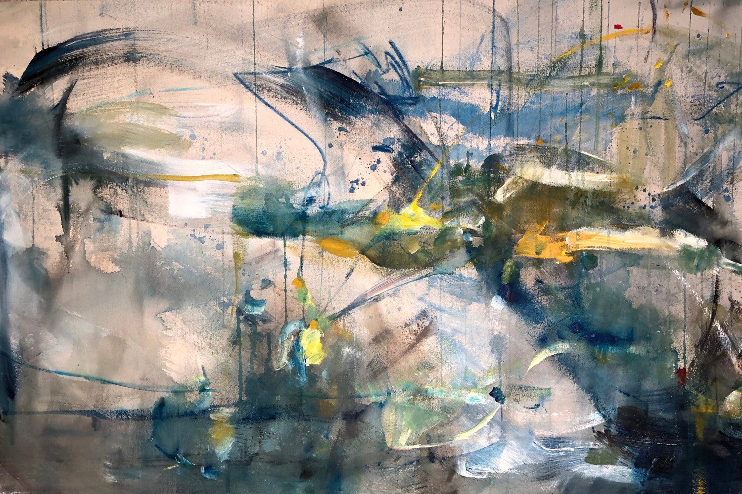 My abstract paintings are inspired by nostalgia and transformation. In my work, I try to revisit places that may no longer be there, always returning to them with novelty. Through layers of gestural images, strokes, and traces of charcoal and ink, the paintings I create represent my own idyllic albeit inexistent space. At the end, the physical places often diffuse and become rather unimportant as they are simply an inspiration, a spontaneous dialogue where each accident moves the painting forward.